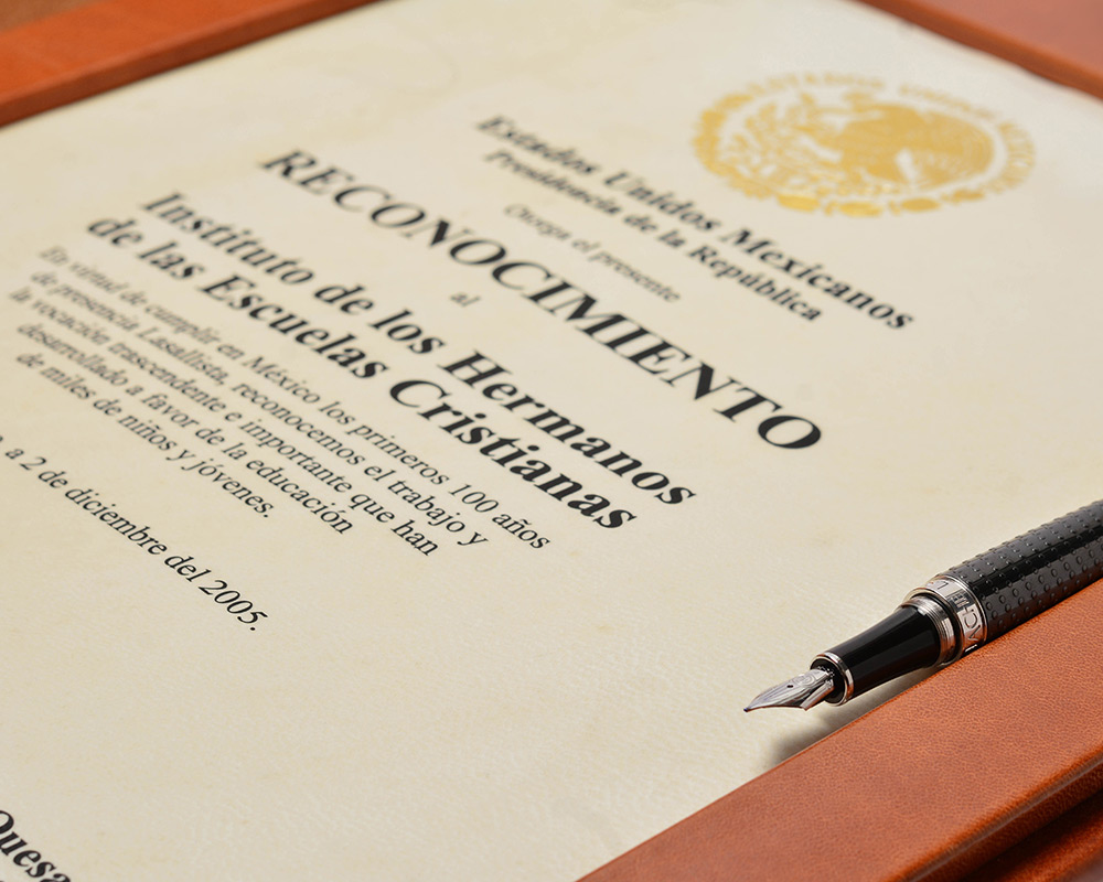 Reconocimientos en pergamino seleccionado (piel de cabra), con redacciones impresas en serigrafía y/o grabado con los colores de su preferencia. Para resaltar el diseño, se puede imprimir su logotipo a un solo tono con Hot-Stamping.